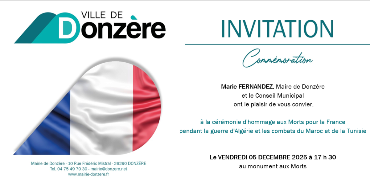 La cérémonie dédiée aux Morts pour la France durant la guerre d’Algérie ainsi que les combats du Maroc et de la Tunisie aura lieu le :