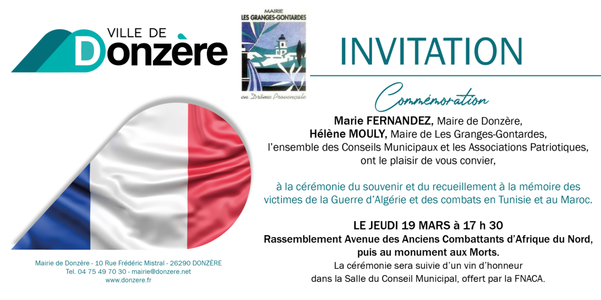 Nous vous invitons à participer à la cérémonie du souvenir et de recueillement à la mémoire des victimes de la Guerre d’Algérie et des combats en Tunisie et au Maroc.
