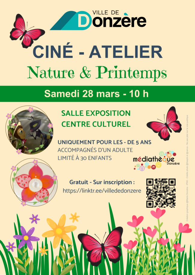 La Médiathèque propose un ciné-atelier destiné aux enfants de moins de 5 ans, le samedi 28 mars à 10 h, à la Salle d’Exposition du Centre culturel.