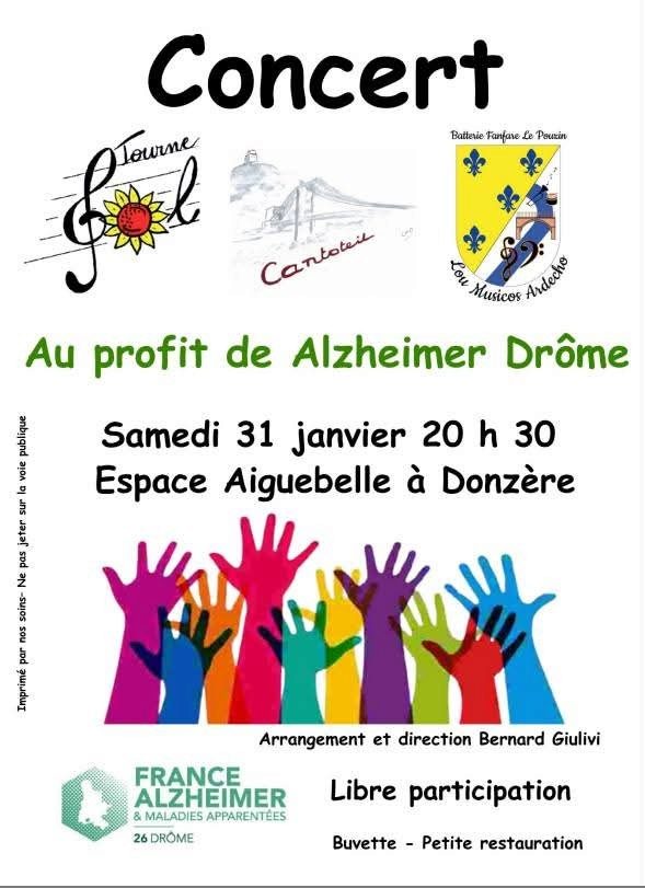 La chorale Tourne'Sol donnera un concert au profit de l'association Alzheimer Drôme le samedi 31 janvier à 20 h 30 à l'espace Aiguebelle.