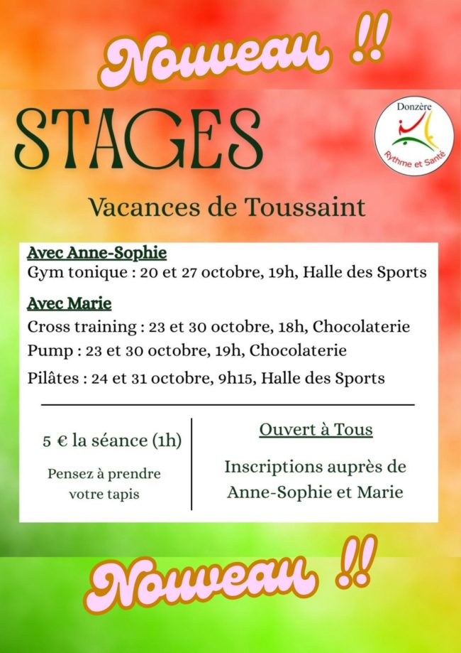 Donzère Rythme et Santé vous propose des stages exceptionnels ouverts à tous : gym tonique, cross training, pump ou pilates… à vous de choisir !